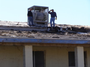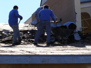 This is a big building and there is a lot of old roofing material that still must be removed.
