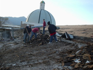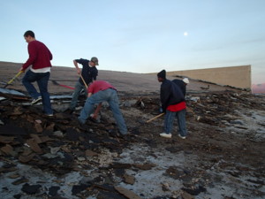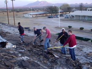 The Youth Group from Colonial Christian Academy, directed by Dr. Barbara Krell, from Columbia, South Carolina, have driven to Miracle Valley, Arizona, some 2,000 miles to help Dr. Harter remove the existing roofing material from the tabernacle.