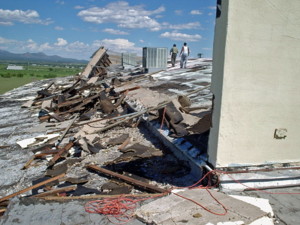 Nearly 70 tons of roofing material is being removed from this roof. No one ever realized that there was so much weight on this roof.
